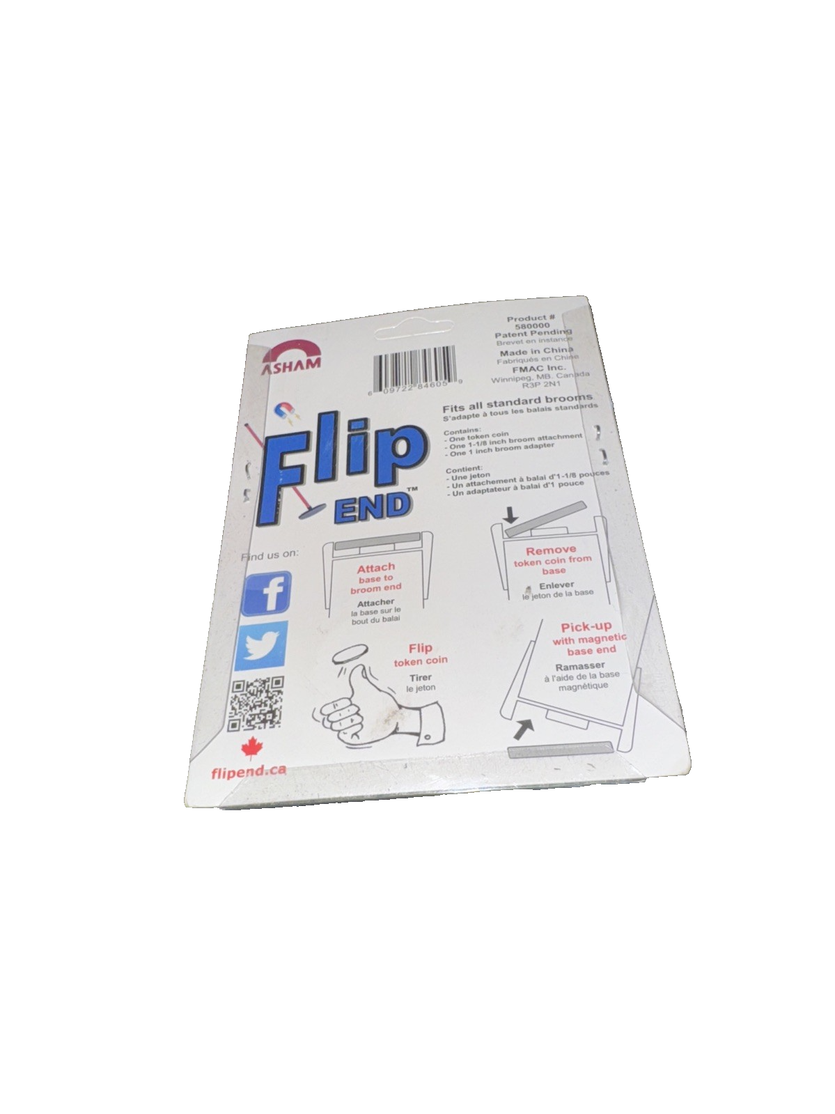Asham Curling Broom Flip End Cap w/ Magnetic Coin Holder
